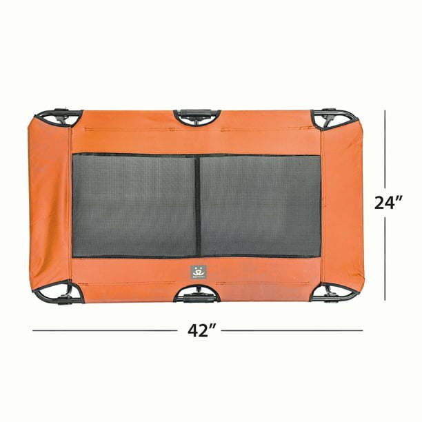 Large Orange Folding Pet Cot comfortably raises your pet off the ground with a sturdy steel frame. Mesh center provides ventilation to help keep your dog cool and dry. Folds for easy  Large Orange Folding Pet Cot comfortably raises your pet off the ground with a sturdy steel frame. Mesh center provides ventilation to help keep your dog cool and dry. Folds for easy storage and travel, and can be used both indoors and outdoors.