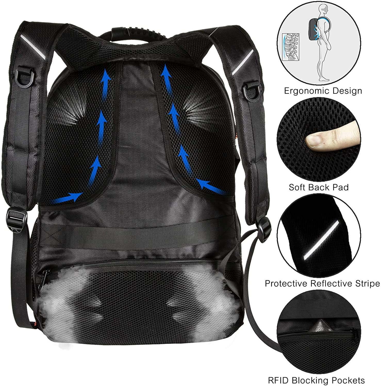 • DIMENSIONS & LARGE CAPACITY: Size: 19.4 in × 10.4 in ×14.96 in. A large capacity of 45Liter with over 20 organizer pockets can meet your various needs. Large multi-compartment backpack with a padded sleeve for 13,13.3,14,15,15.6,17 Inch Laptops/Macbooks/computers for boys, girls, students, teens, adults, women, and men. Organizational compartments can be used for additional supplies and accessories such as iPhones, iPods, pens, keys, wallets, books, clothes, passports, and cell phones. Mesh water bottle pockets are on both sides.